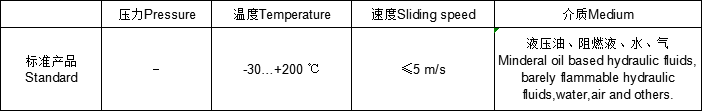 標準材料密封環:填充聚四氟乙烯F-PTFE或聚氨酯PU0形圈:丁腈橡膠NBR或氟橡膠FKM特點-雙唇口防塵圈用于改善整體密封性-低摩擦,低粘性摩擦-在工作出過程中有極好的調節和定位能力-對于行程短和頻率高條件下使用的防塵圈可以變換材料定做-可靠性高,在短時間內能接受滿負荷的工作壓力