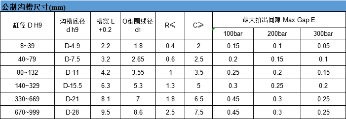 要求活塞桿或活塞密封的場合均可提供-摩擦力小-啟動時不爬行,無粘滯現象-抗磨性及尺寸穩定性好-溝槽簡單且尺寸小,具有潤滑腔